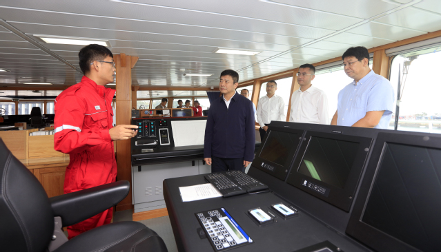 李明书记考察“东方红3”船驾驶舱